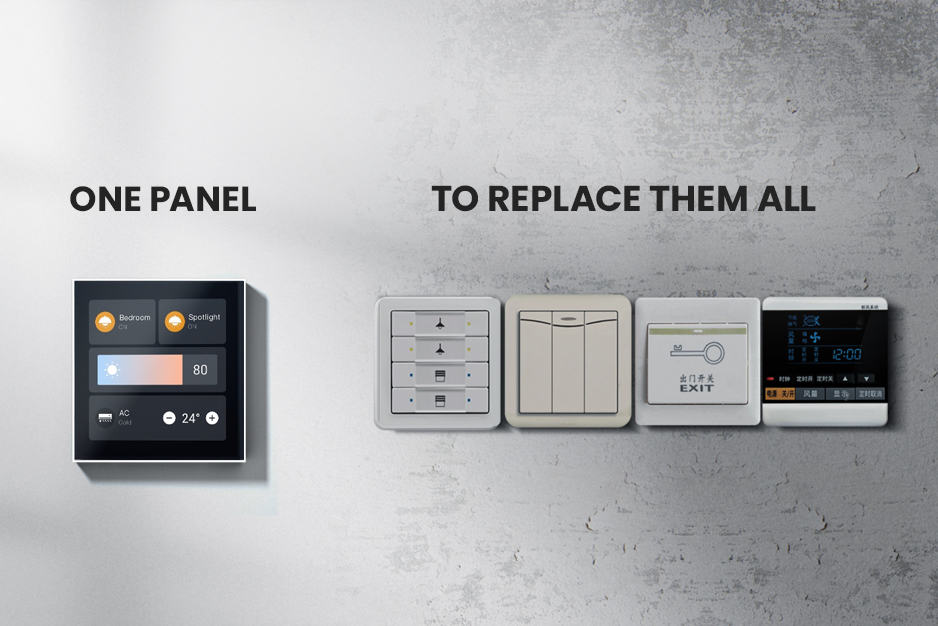 Our Super Smart Panel can control the lights, air conditioners, curtains and other home appliances in the room, making the wall more concise and beautiful, replace the complexity of traditional switches.